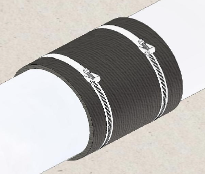 Flexible rubber sleeve with two stainless steel adjustable clamps to connect header pipes, caps, tees and elbows. Specs: 6" diameter.