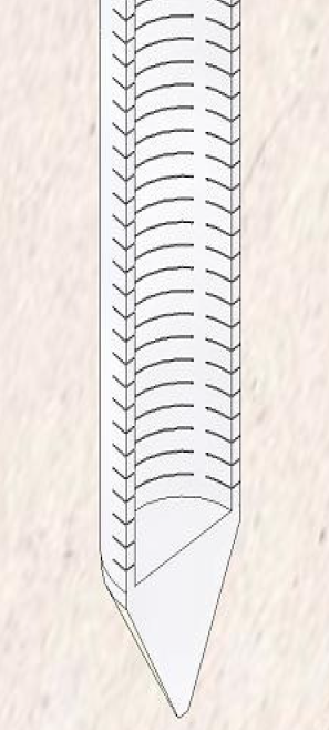 Specs: 3’ wellpoint screen, 23' schedule 160 PVC x 1.5” diameter, schedule 40 PVC with 0.016” slots on three sides of the pipe.
