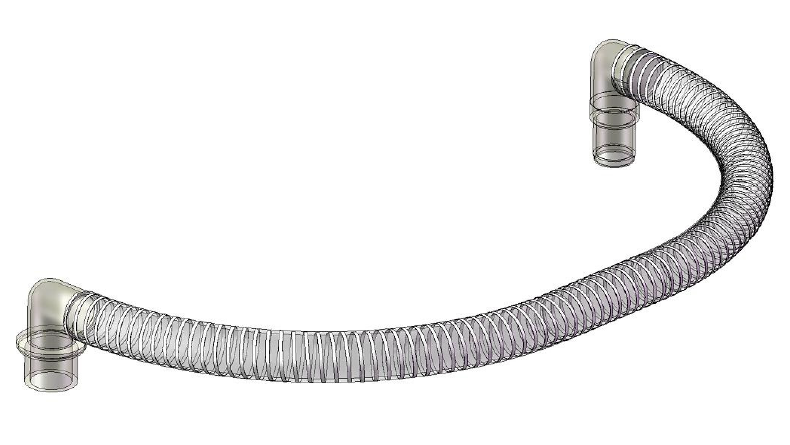 Swing joint made of clear flexible PVC hose reinforced with a white helix that connects the riser pipe to the header valve assembly. This is used with Thompson style header pipe.